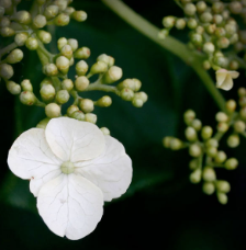 - Produces delicate white lacecap flowers