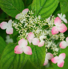 - Lacecap-style blooms